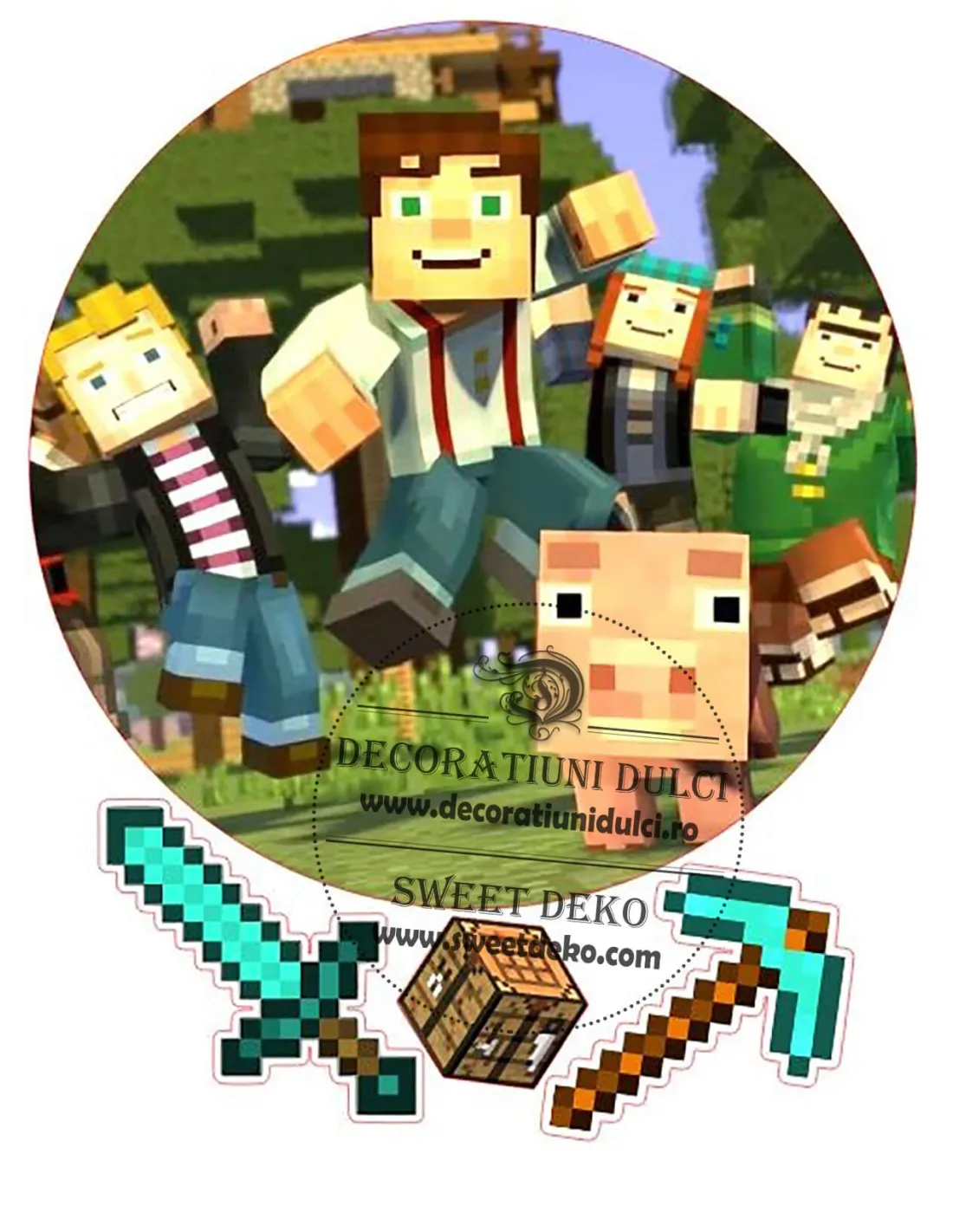 Poza pentru decorarea torturilor cu decoruri Minecraft. Imagine editata pentru a se incadra pe torturile cu diametrul de 20cm.