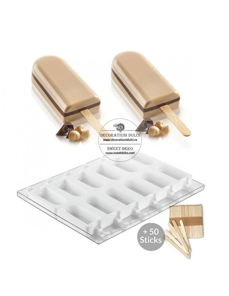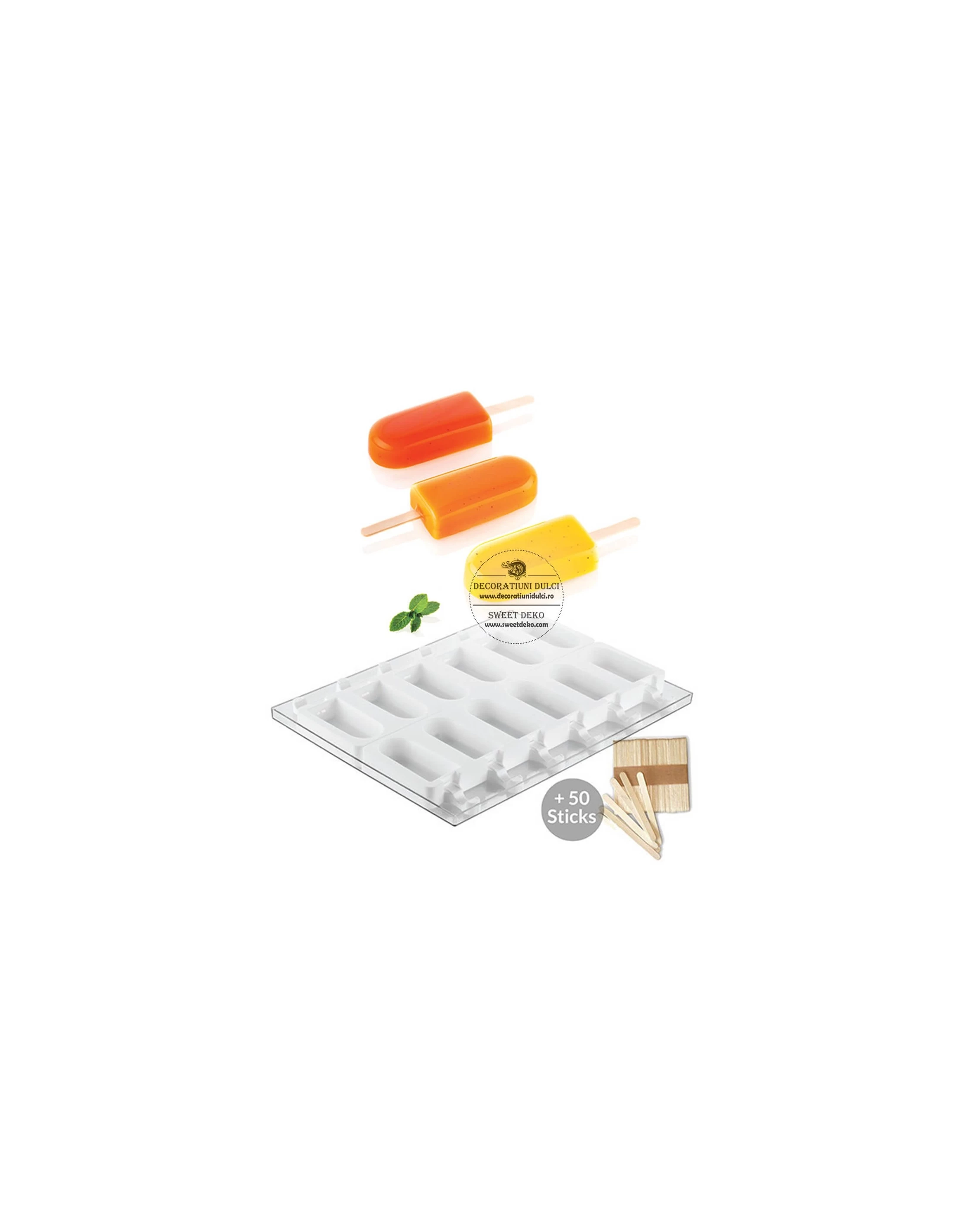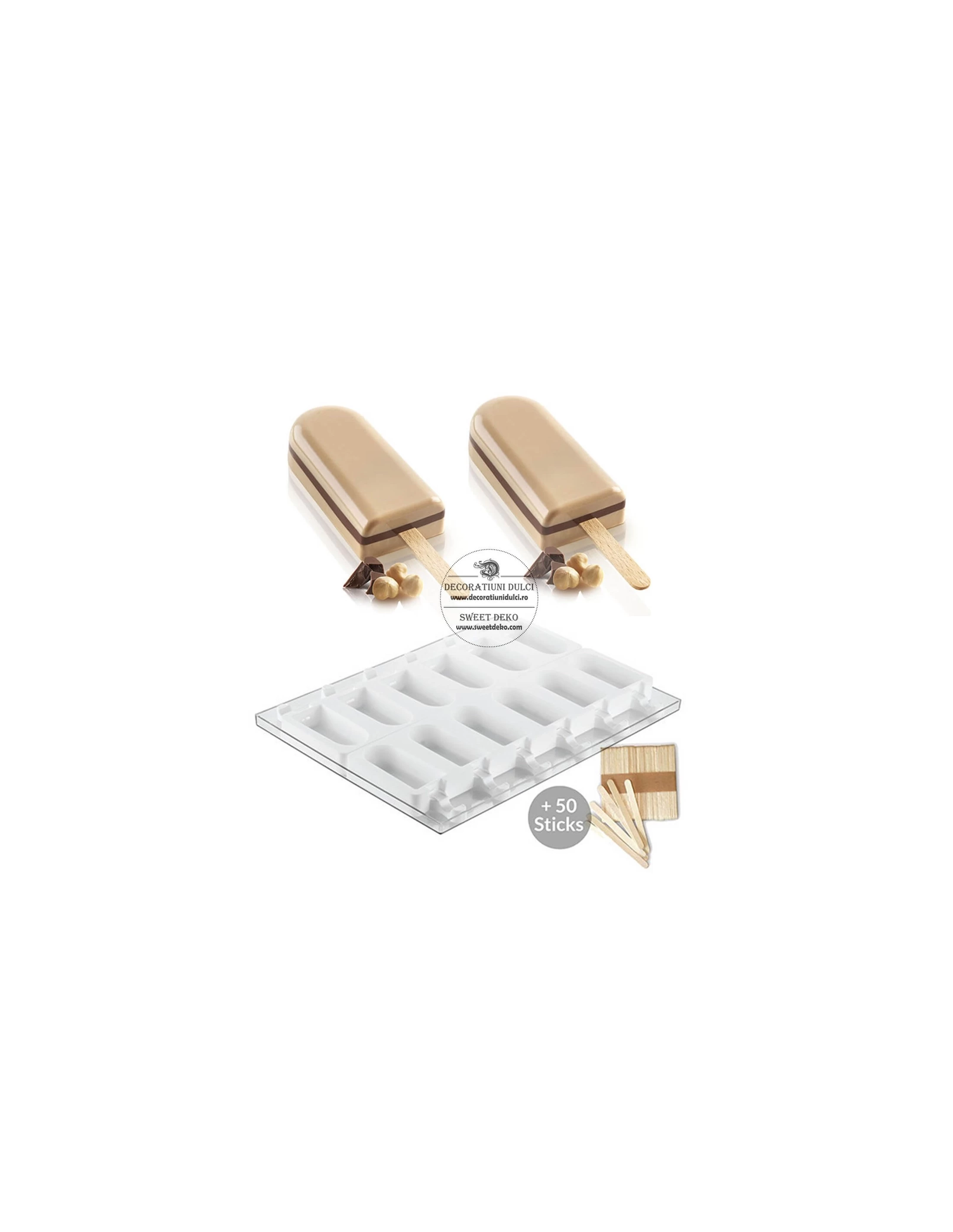 Matrita GEL12 cu 6 cavitati, vine intr-un kit format din 2 matrite, in total 12 cavitati pentru monoportii, o tava si un set de 50 de betisoare. Practica si functionala, fabricata din silicon alimentar 100%, potrivita pentru prepararea si afisarea produsului.