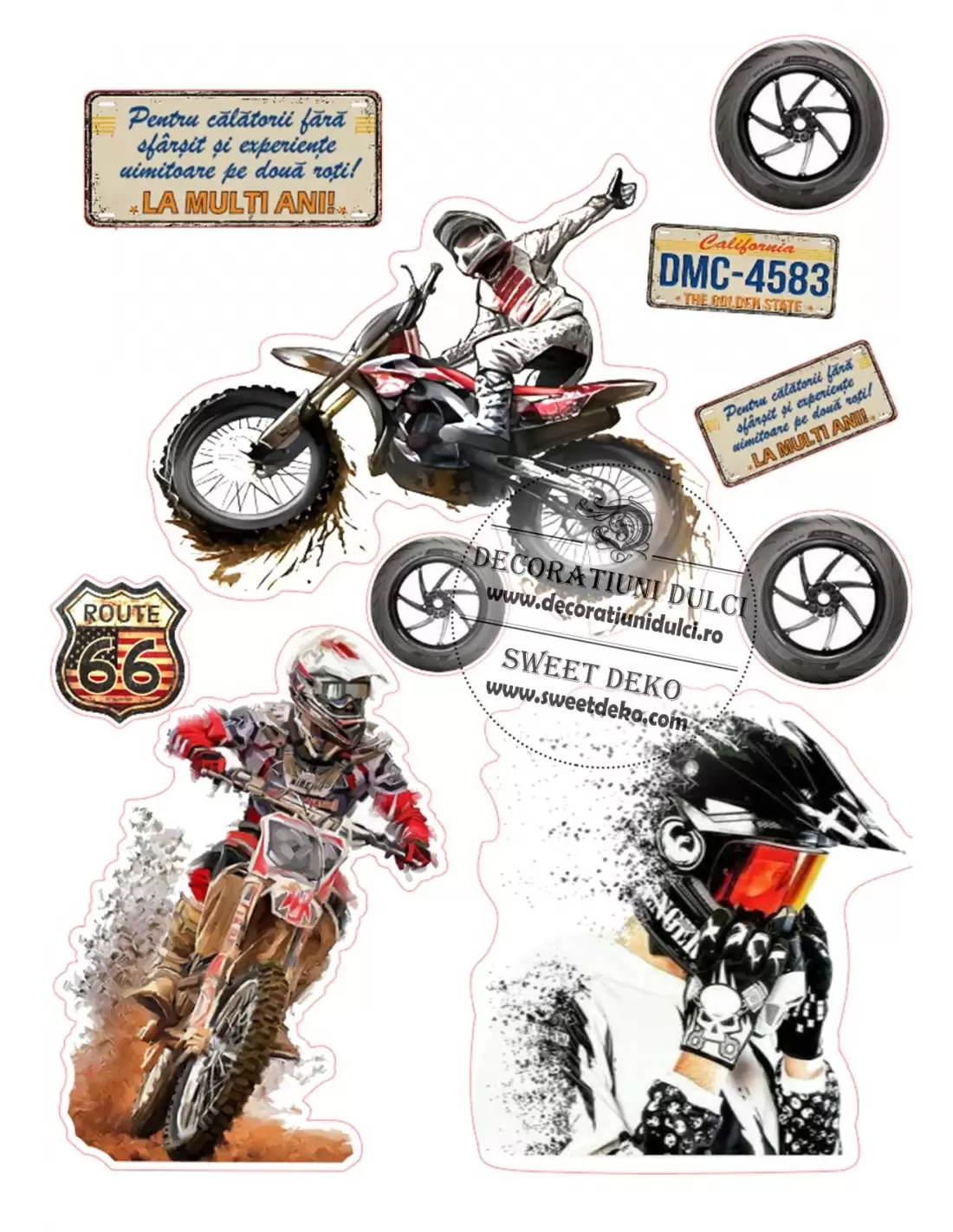 Descoperă coala dulce imprimată cu cerneală comestibilă, prezentând diferiți motocicliști. Perfecte pentru pasionații de motociclism, aceste decorațiuni vibrante și detaliate sunt opțiunea ideală pentru a adăuga o notă de aventură și pasiune la orice tort. Această coală este complet comestibilă și ideală pentru decorarea deserturilor pasionatilor de adrenalina .