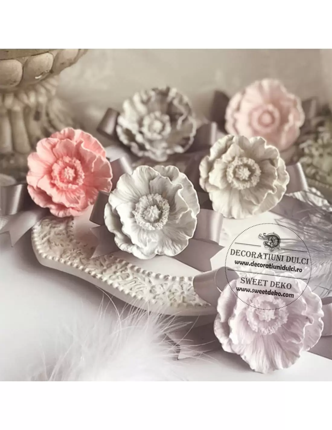 Mulaj din silicon alimentar cu care veti obtine o floare de mac tridimensionala. Puteti folosi mulajul cu pasta de zahar, izomalt, royal icing, ciocolata etc.