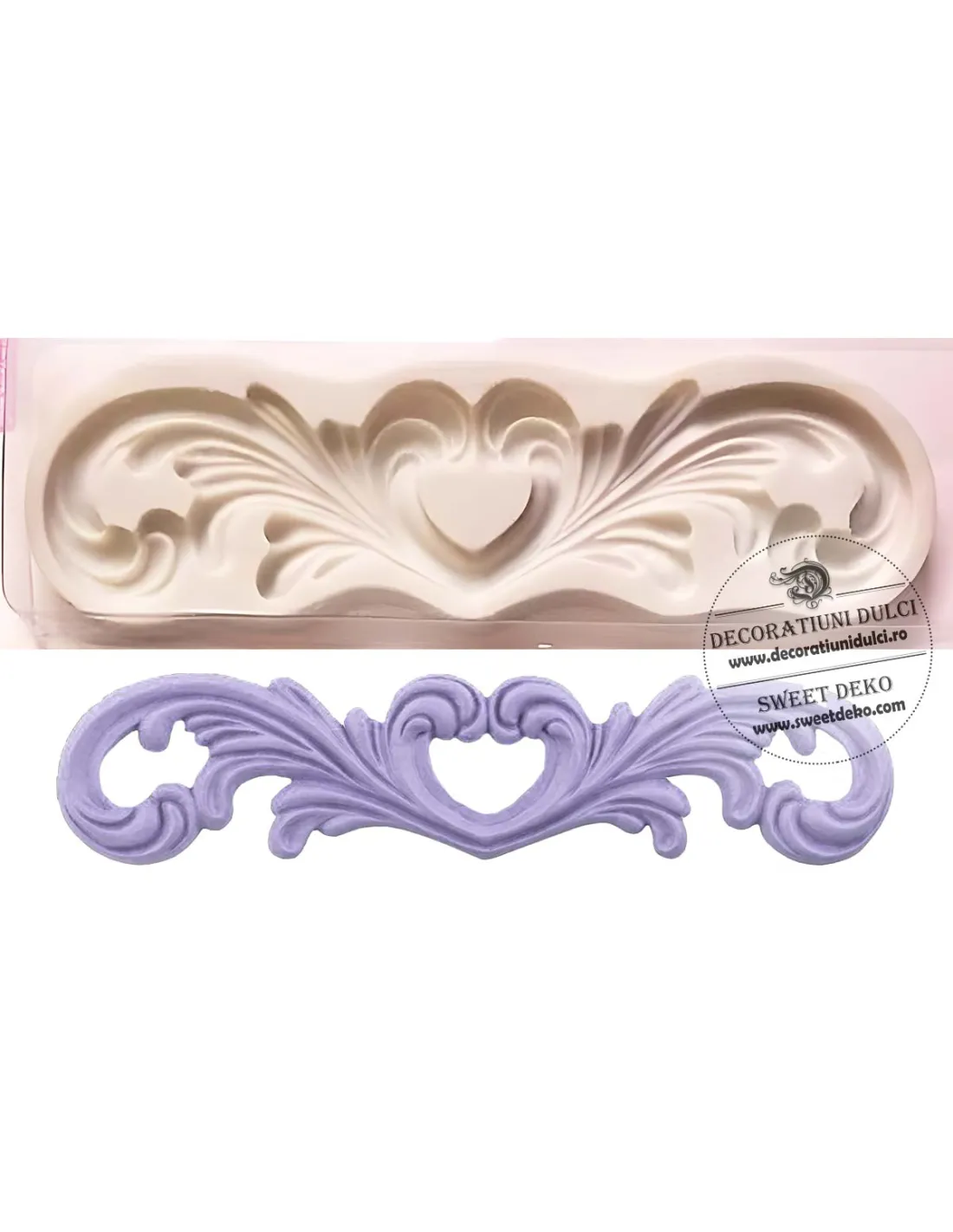 Un mulaj cu care ornezi imediat un tort. Este elegant, stilat si poate transmite multe mesaje. Inima brodata iese in evidenta si decoreaza perfect orice tort care poate spune: te iubesc, multumesc etc.