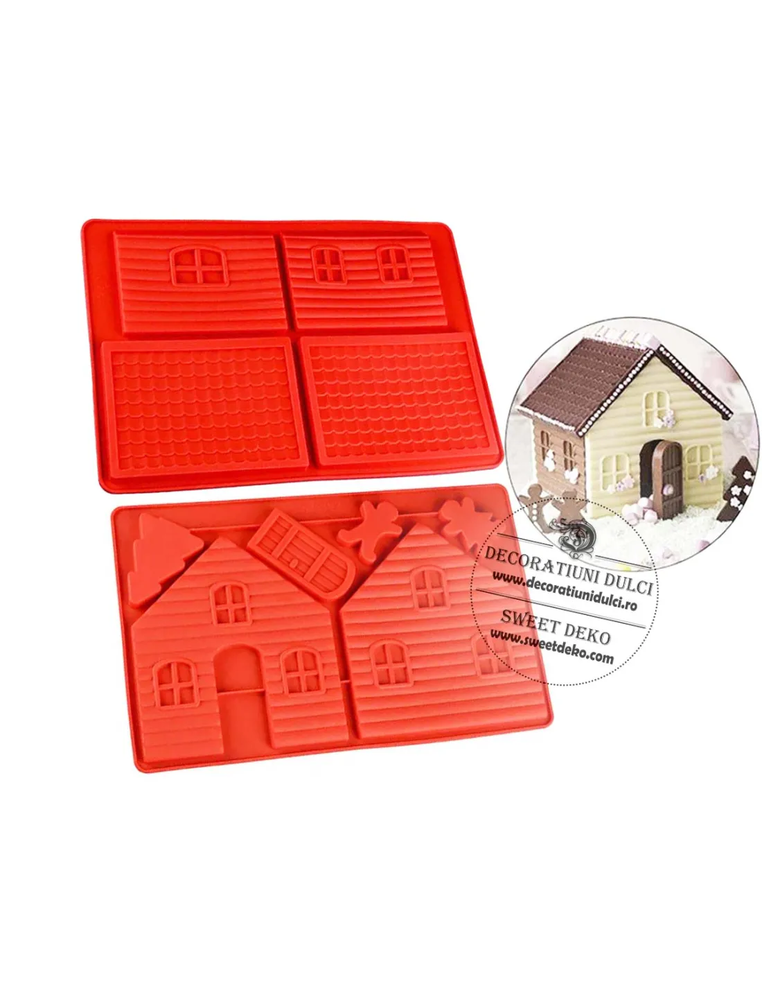 Mulaj din silicon cauciucat, cu toate detaliile pentru a coace o casuta din turta dulce tridimensionala (in pachet vor fi ambele mulaje din imagine).