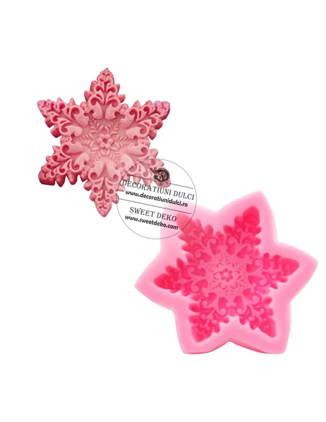 Mulaj din silicon in forma de fulg cu un model minutios realizat pe suprafata lui.