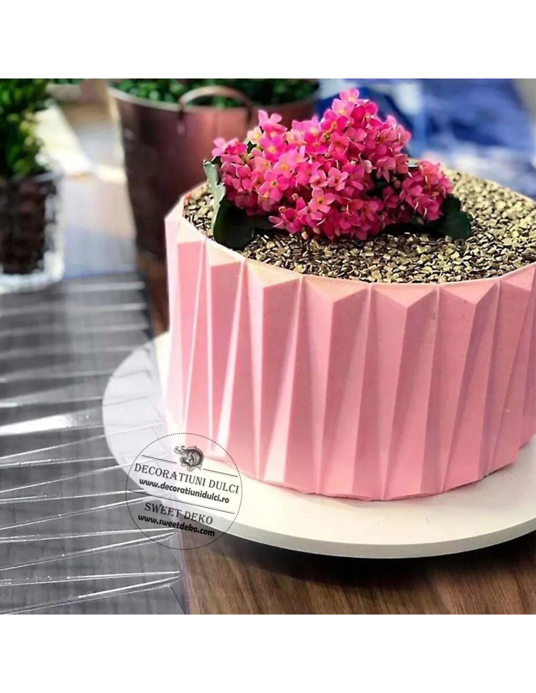 Decor lateral - bordura pentru tort, model origami, ideala pentru a oferi deserturilor un aspect modern si elegant.