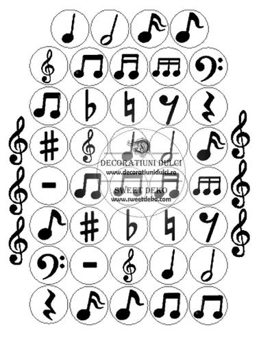 Cerculete cu note muzicale, ideale pentru micutele ce viseaza sa ajunga adevarate cantarete sau pentru evenimentele cu tematica muzicala. Asezate pe briose, turta dulce sau miniprajituri vor aduce adevarate cantece in vitrina cofetariei dumneavoastre.