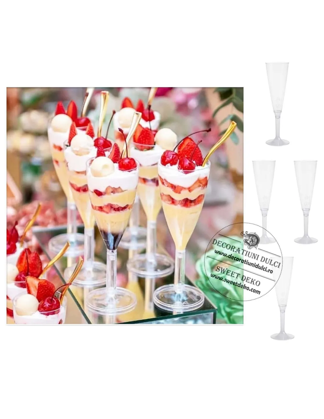 Pahare de sampanie de unica folosinta, fabricate din PS transparent, ideale pentru servirea bauturilor carbogazoase, racoritoare, cocktailurilor sau a deserturilor creative.
