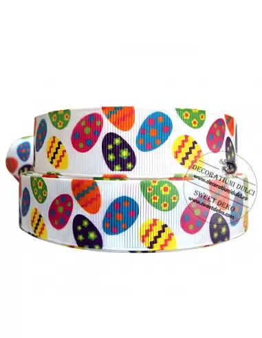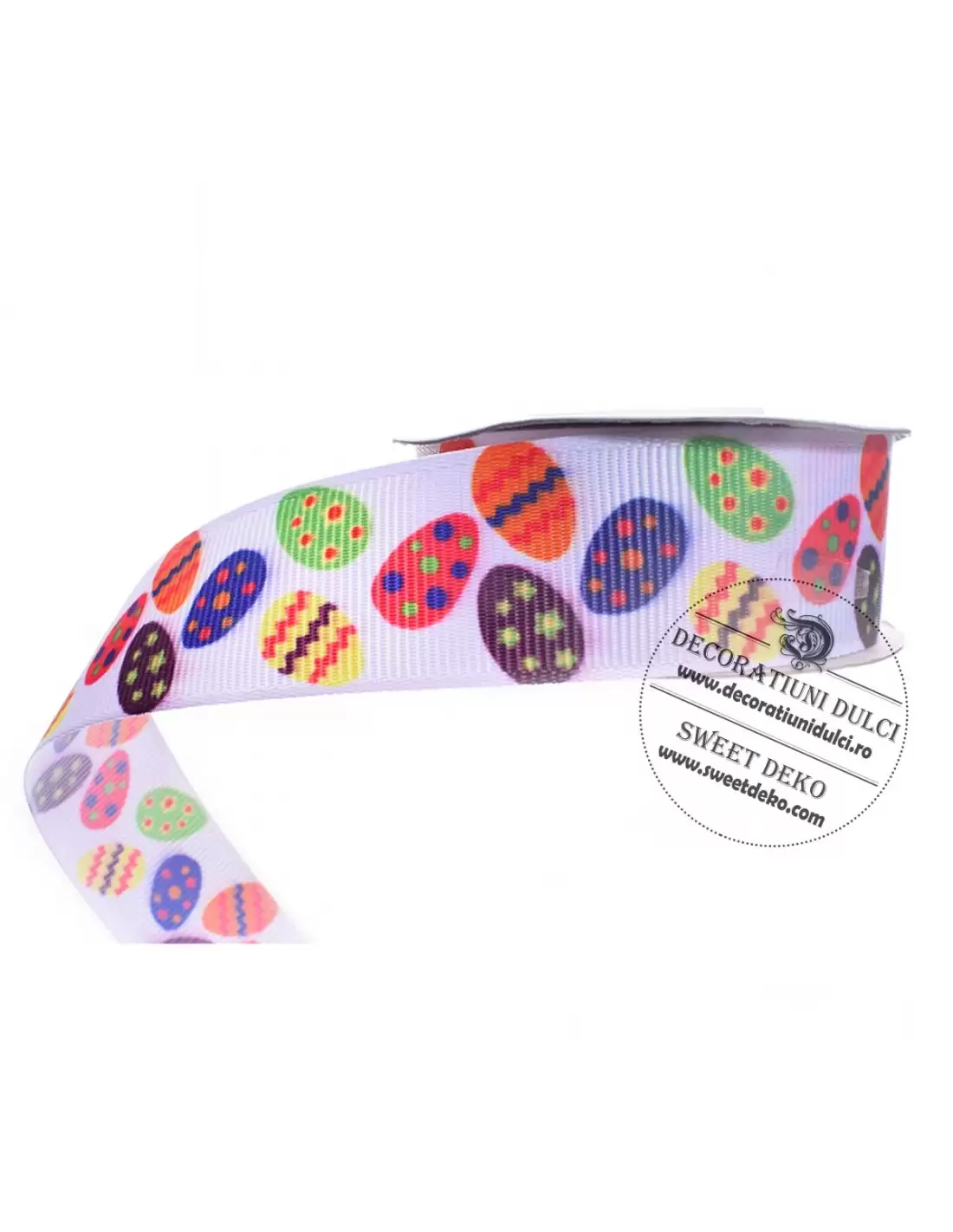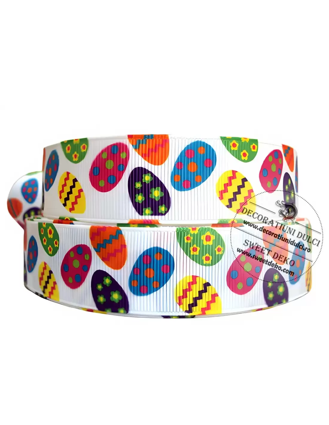 Pamblica cu oua colorate pentru fundite cu tematica. Cozonacul sau cosul pe care doriti sa il oferiti poate avea o fundita asortata pentru sarbatorile Pascale.