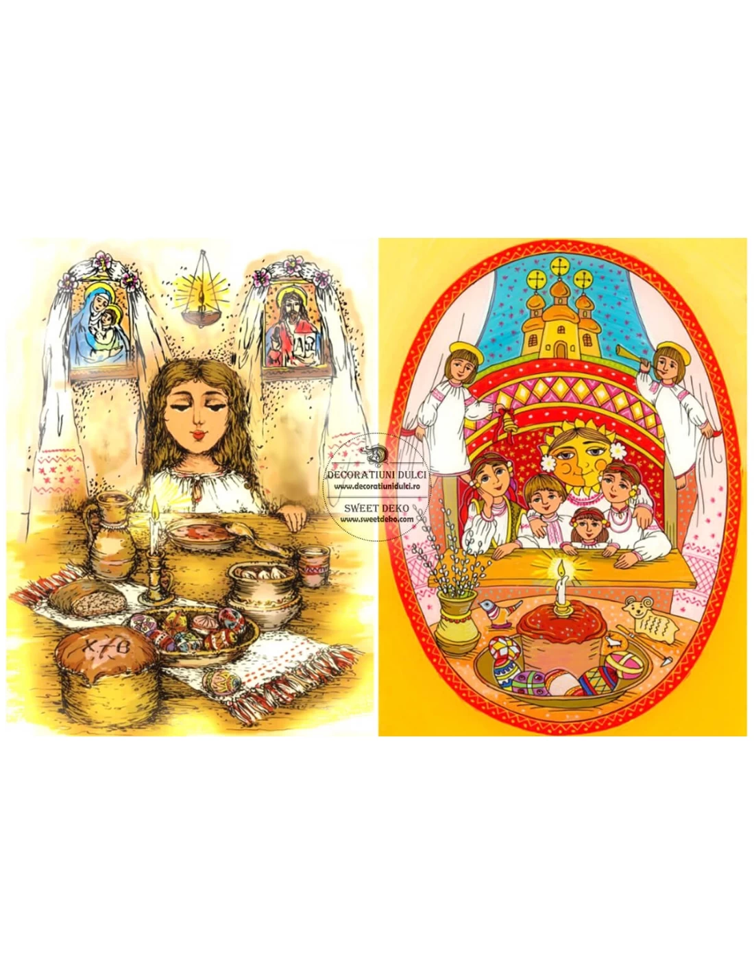 Imagini imprimate pe coala din pasta de zahar, pentru decorarea deserturilor dedicate sarbatorilor pascale.