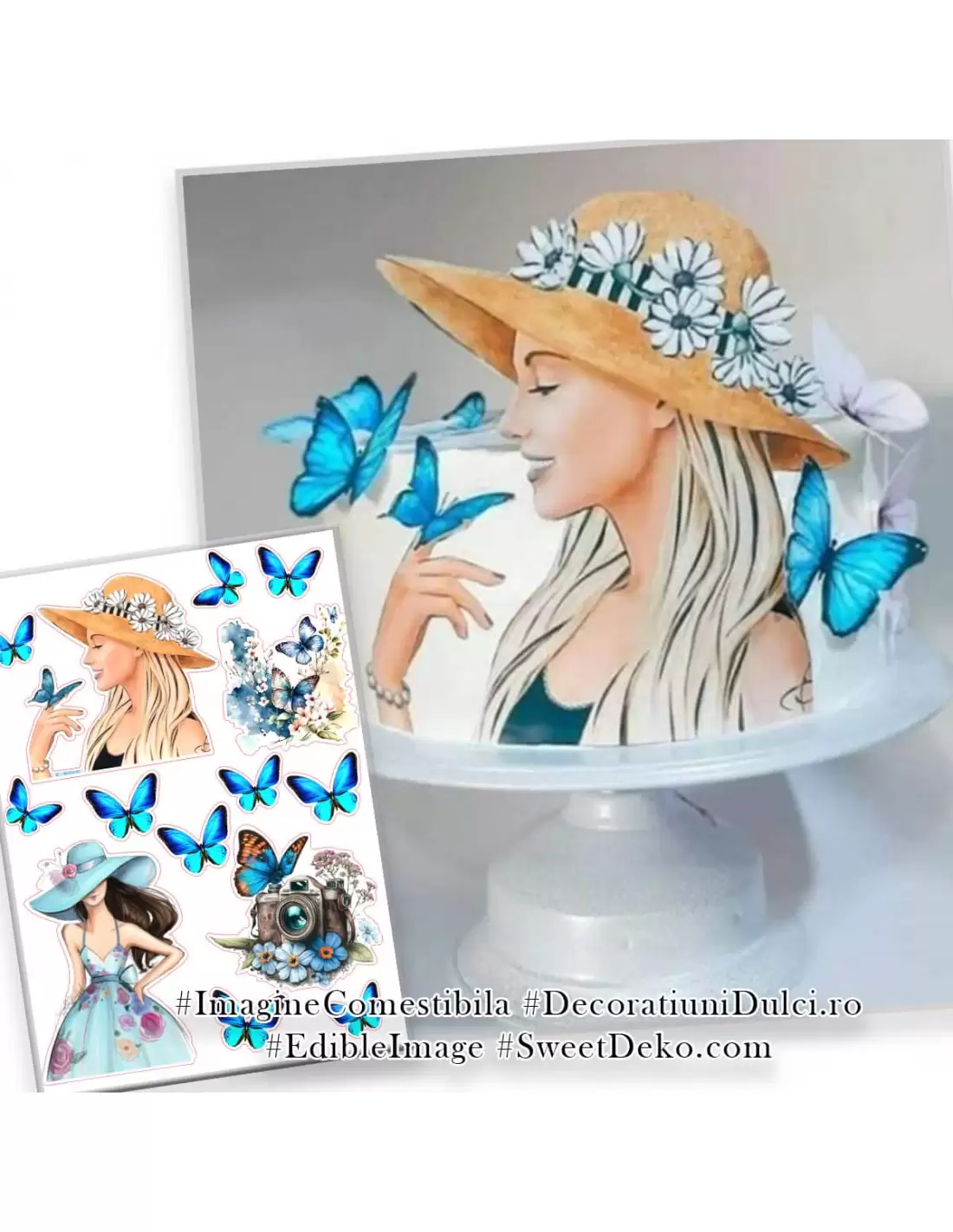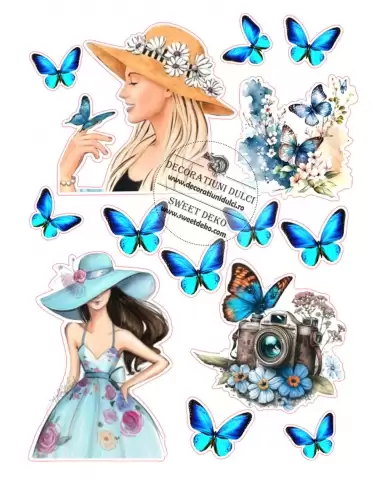 Imagine comestibila Fete si fluturi albastri sunt imagini imprimate cu coloranti alimentari potrivite pentru decorarea deserturilor. Adaugati detalii precum flori, dantela sau alte decoruri tridimensionale si tortul va fi o surpriza memorabila.