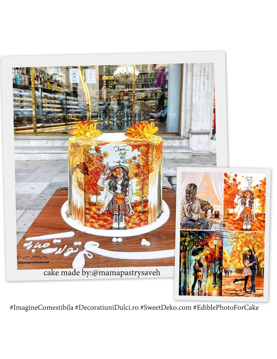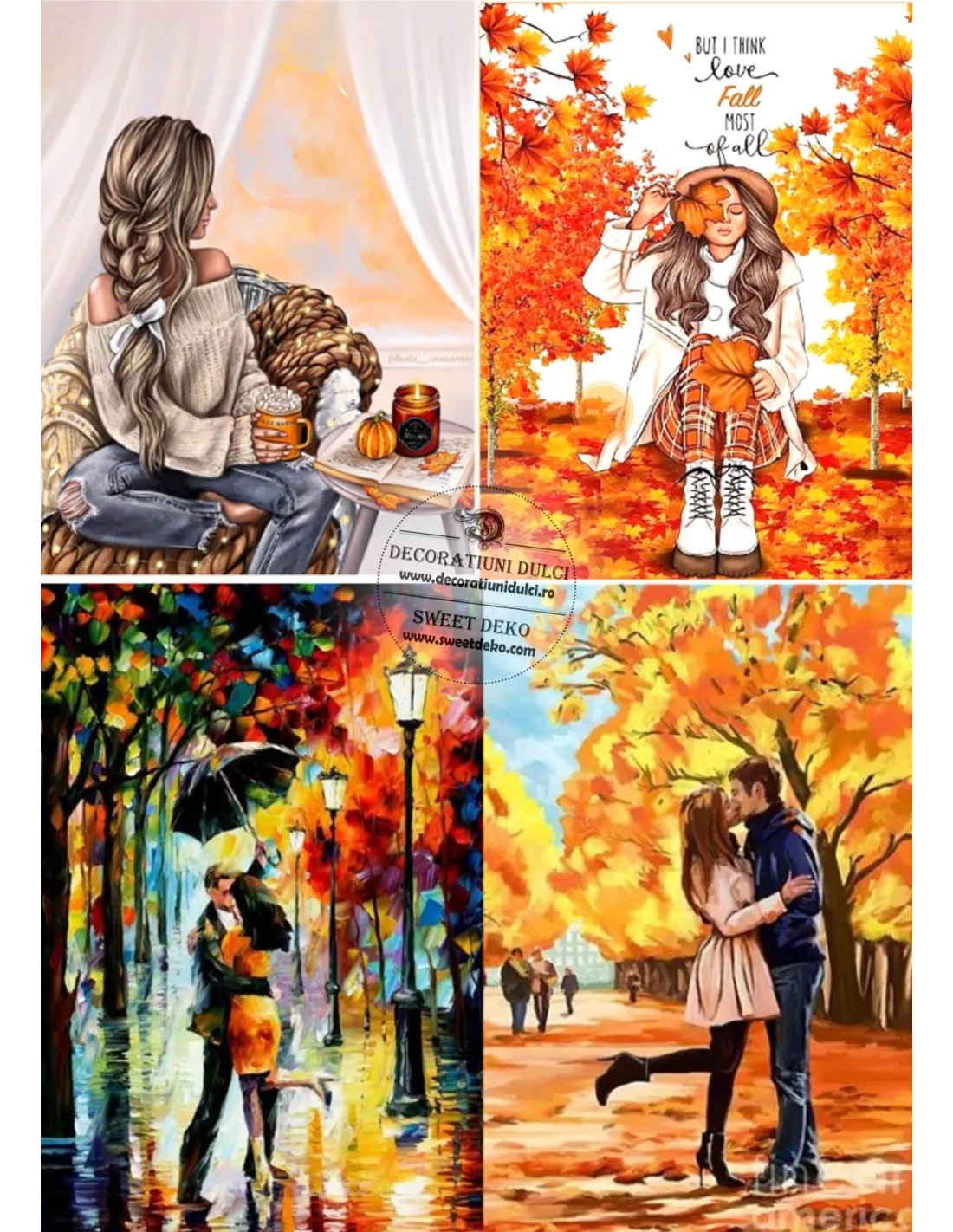 Coala de zahar, imprimata cu cerneala comestibila, pentru a crea tortul perfect cu ilustratii de toamna. Aceasta hartie este cu putin mai groasa decat o coala normala. Poate fi asezata pe: fondant, martipan, frisca vegetala, crema de unt.