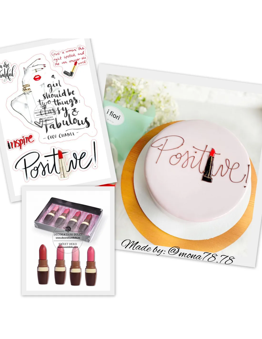 Pornind de la tortul realizat de catre @Mona78.78 si adaugand micile rujuri din ciocolata am realizat acest colaj de imagini pentru acele momente in care buzele pot fi admirate. Din aceasta coala comestibila nu puteau lipsi unul dintre sfaturile lui Coco Chanel. Un decor cu care poti alinta orice femeie stilata draga tie.