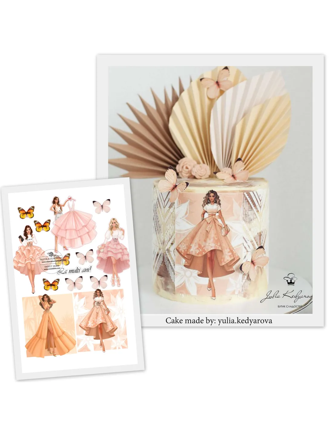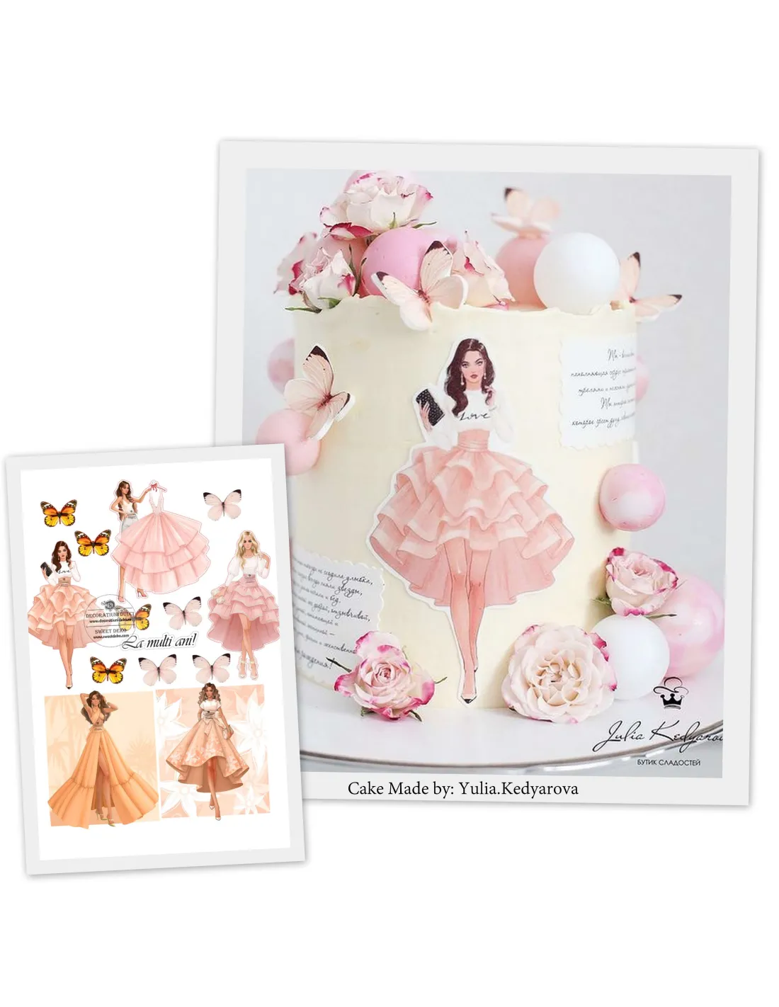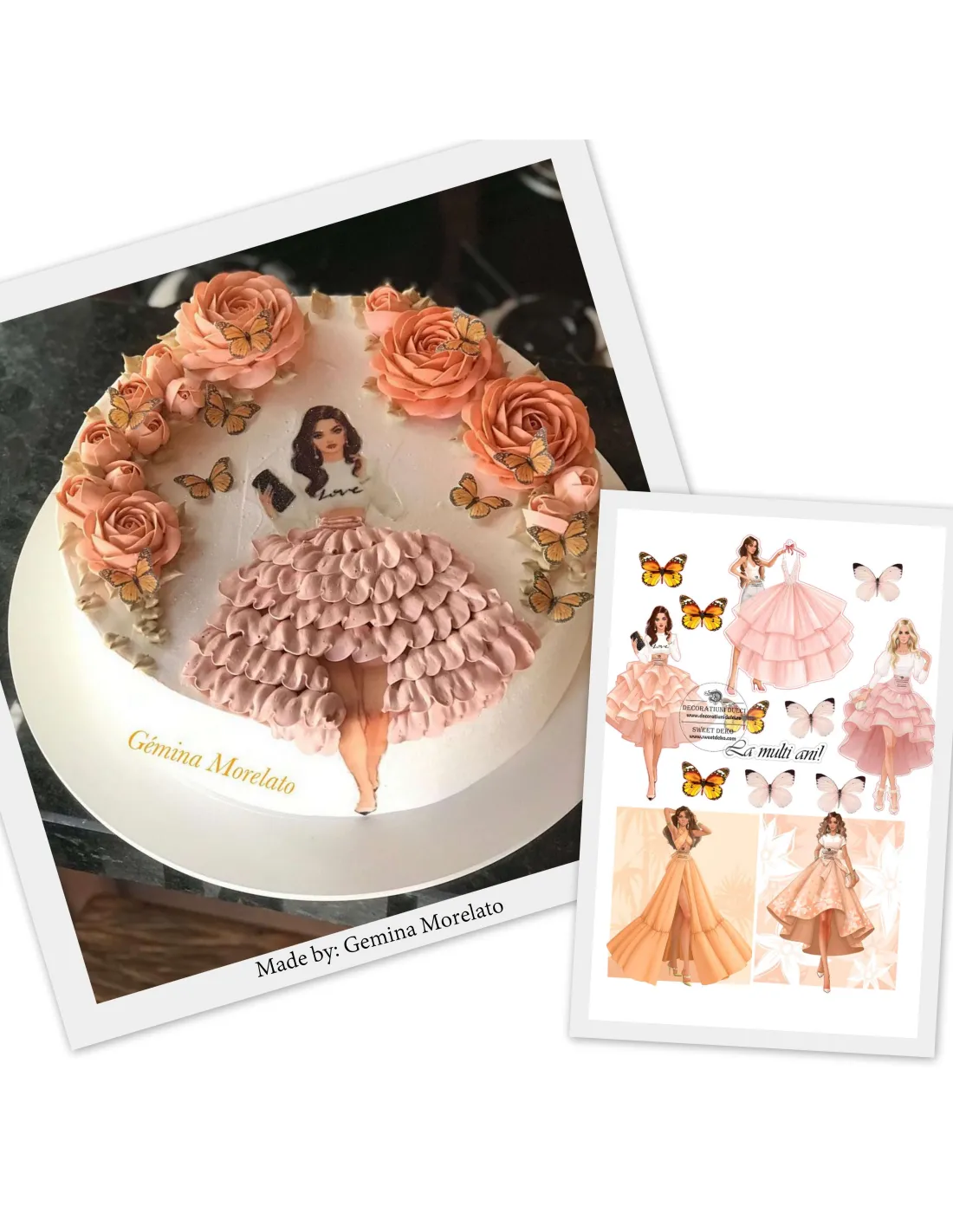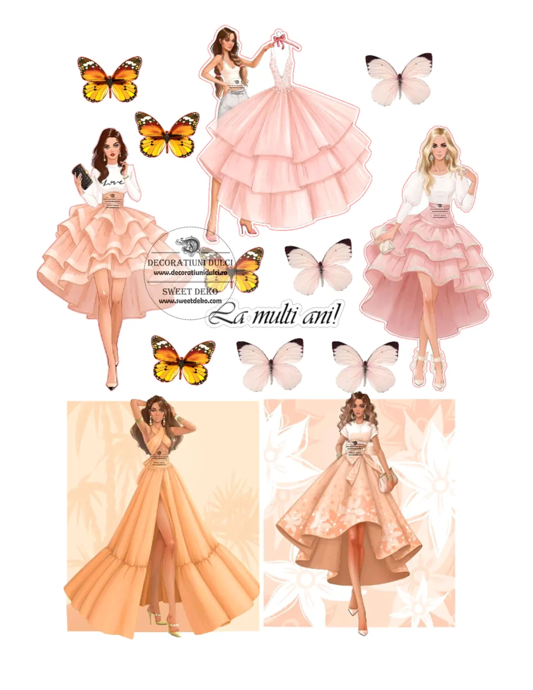 Imagine comestibila, Somon Dress tinere in diferite ipostaze, rochii in nuante de roz - somon si fluturasi asortati.
