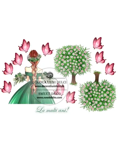 siluete tanara 13 cm inaltime totala (10 cm pana la varful cozii impletite), inaltime copaci 10cm, fluturasi cca. 3cm