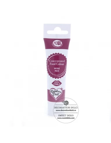 Ingredinte:Colorant gel vin rosu, Rainbow Dust Progel - wine red, humectant: E422, apa, coloranti: E122, E129, E133 amidon modificat (tapioca).