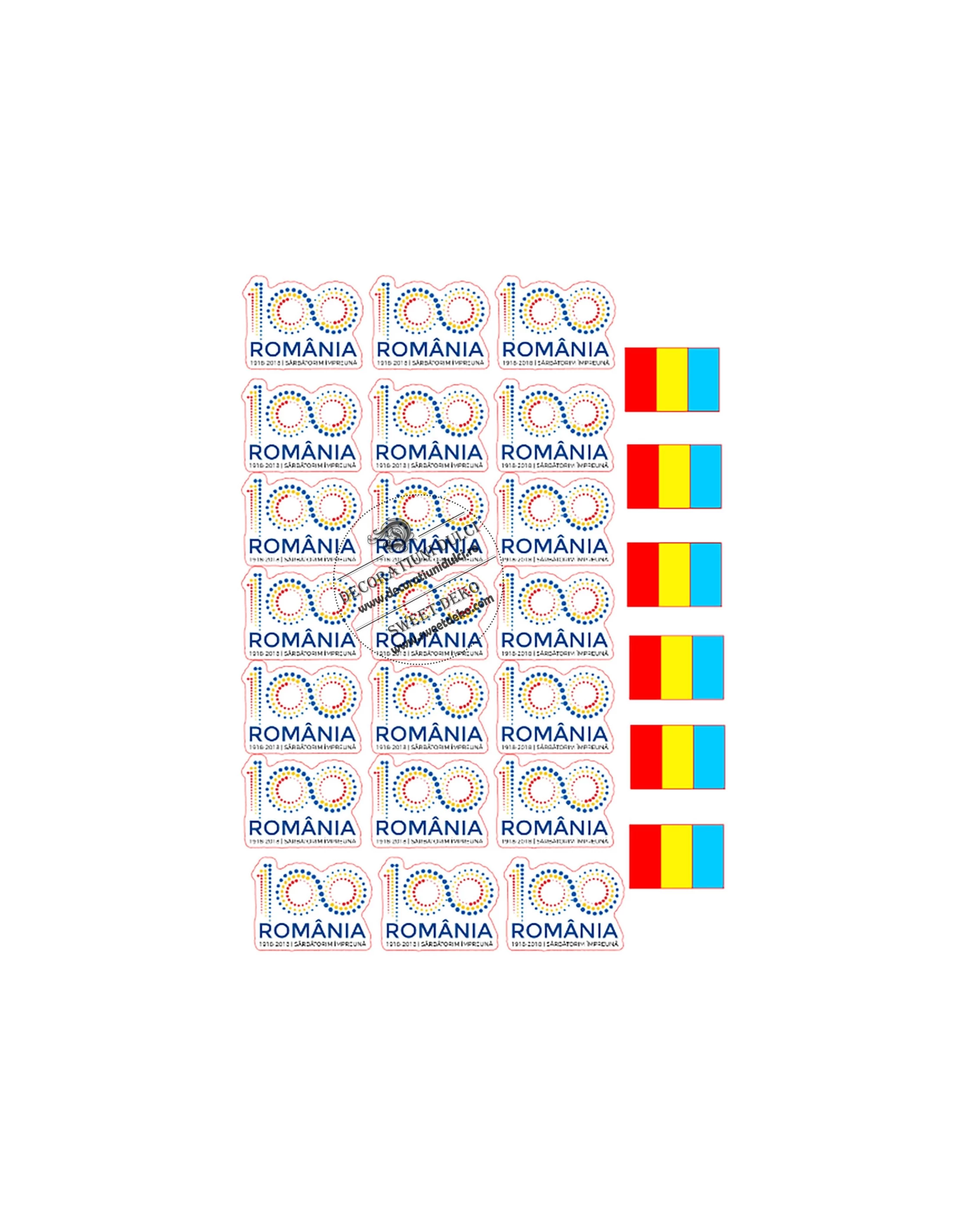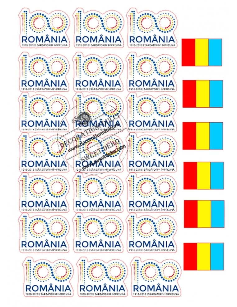 Orneaza briose sau biscuiti special pentru a serba marea unire. 100 de ani Romania, imagini imprimate pe coala din pasta de zahar, pentru a decora usor deserturile din aceasta perioada.