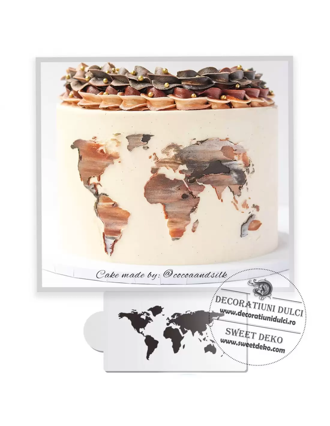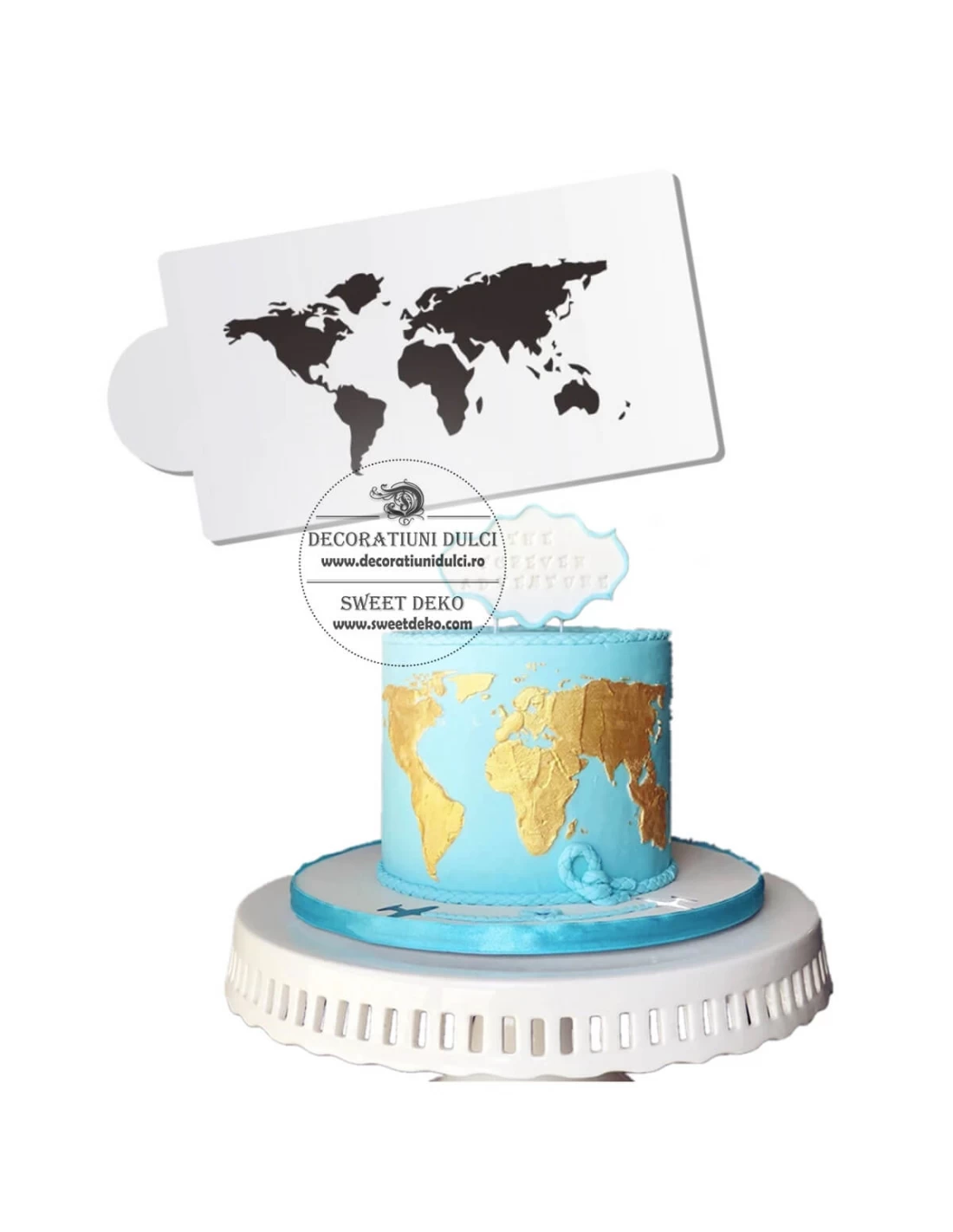 Sablon decor tort model harta lumii o metoda usoara de a tranfera modelul pe suprafata tortului.