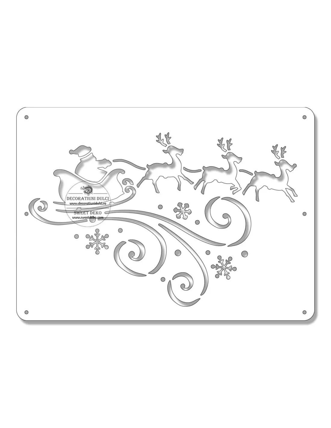 Sablon Mos Craciun cu sanie, Cake Stencils este un sablon care se poate folosi cu vopsea alimentara, buttercream, royal icing pentru decorarea torturilor.