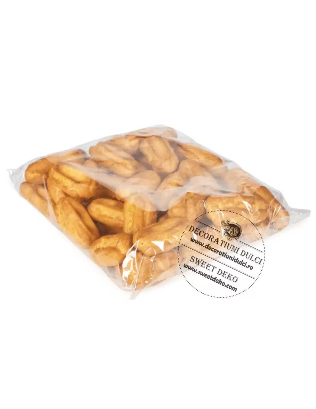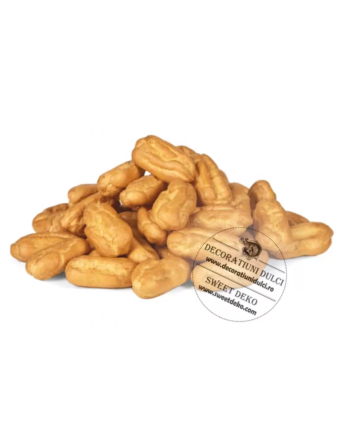 Coji de eclere cu lungimea de 7cm. Sunt gata de folosit, trebuie doar umplute cu crema ta favorita cu cateva ore inainte de servire. Intr-o punga sunt aproximativ 45 de buc. de coji, acestea sunt ambalate prin cantarire.