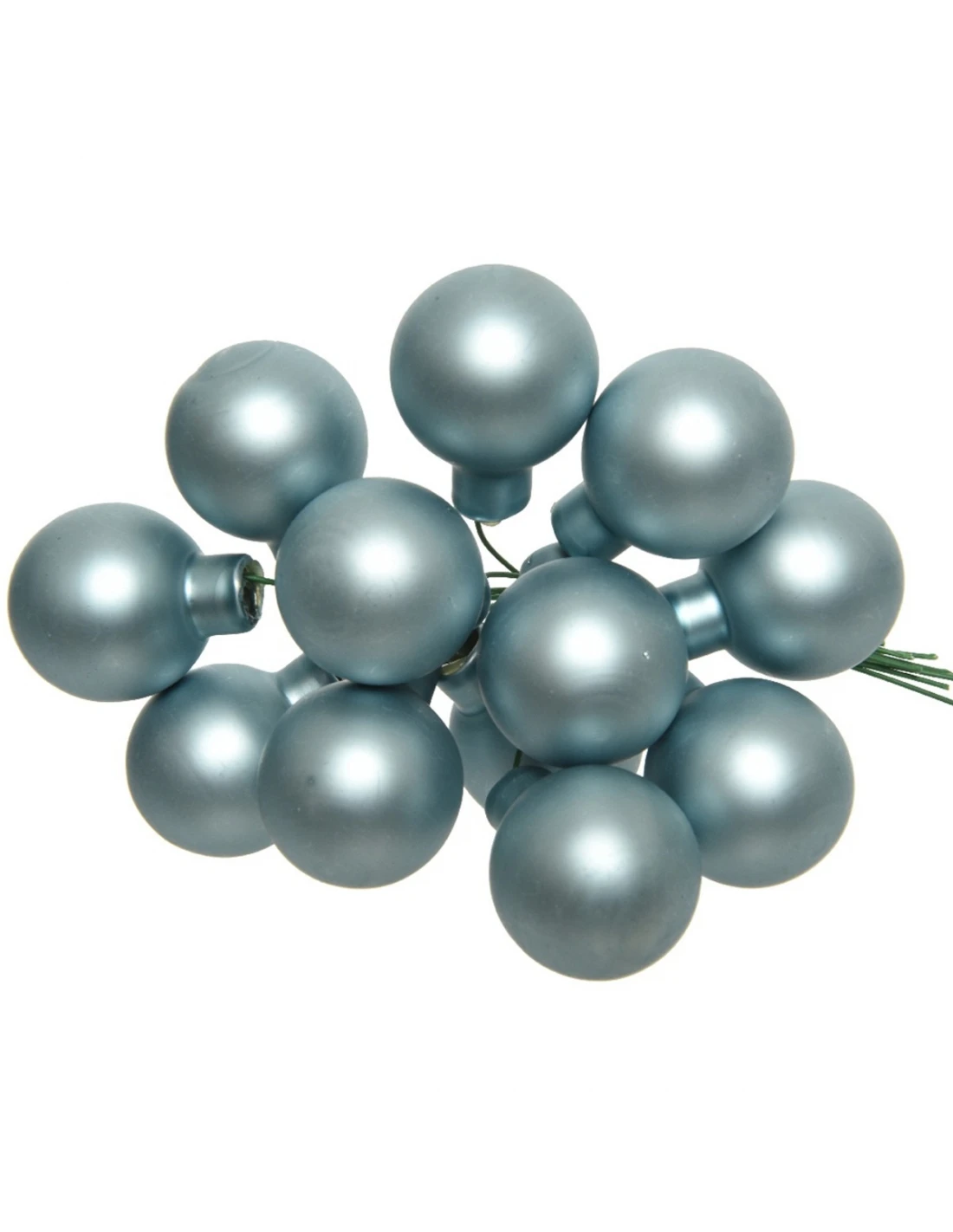 Aceste mini globuri din sticlă, cu un diametru de 2.5 cm și finisaj elegant misty blue mat, sunt ideale pentru o varietate de decorațiuni. Prevăzute cu sârmuliță cauciucată pentru o fixare ușoară, ele pot fi utilizate nu doar pentru împodobirea bradului, aranjamentelor florale sau coroanelor festive, ci și pentru completarea fundițelor de mărturii și a altor creații delicate.