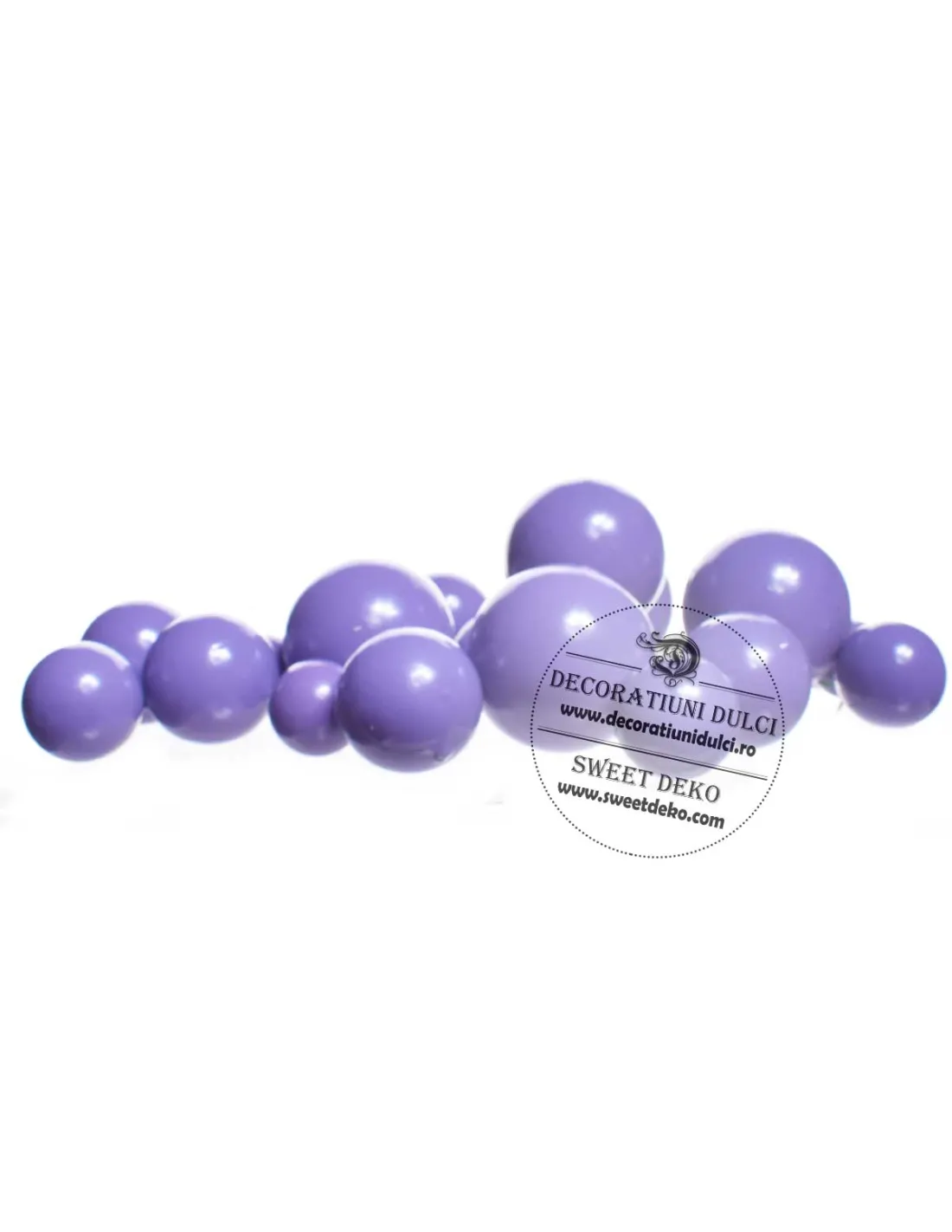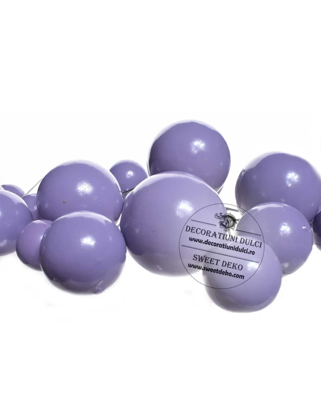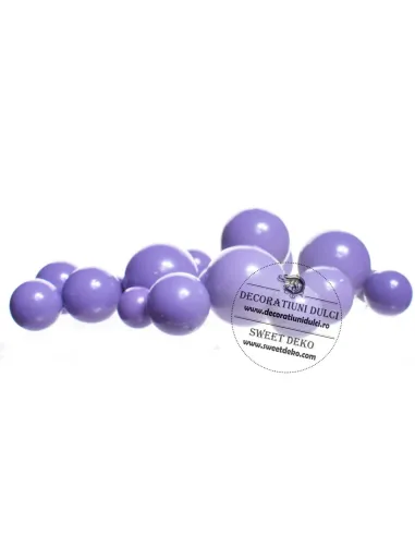 Sfere decorative mov, cu aspect lucios, ideale pentru ornarea torturilor si prajiturilor, utilizate doar ca elemente de decor. Sarmulita trebuie protejate cu folie alimentara pentru a nu intra in contact direct cu produsul.