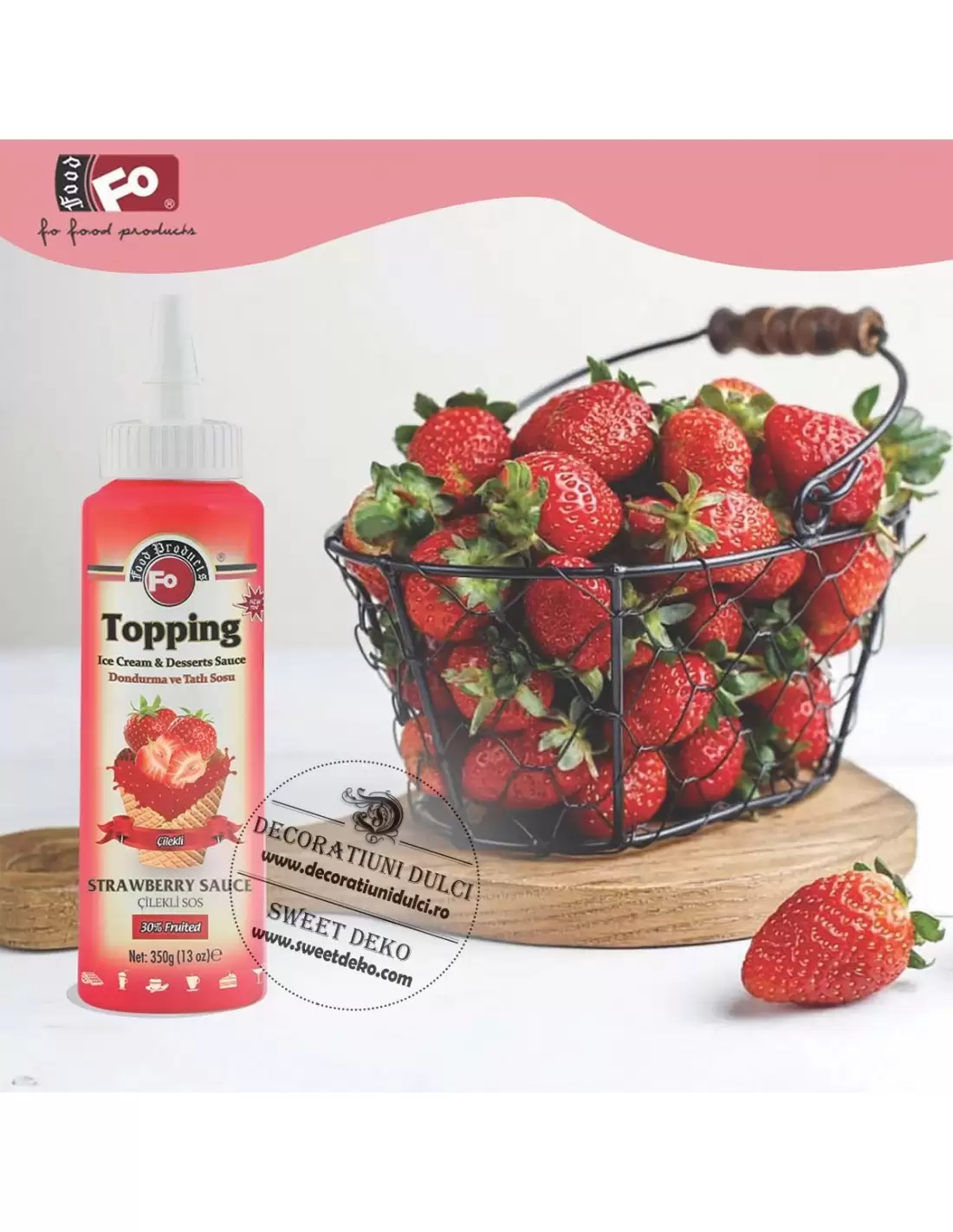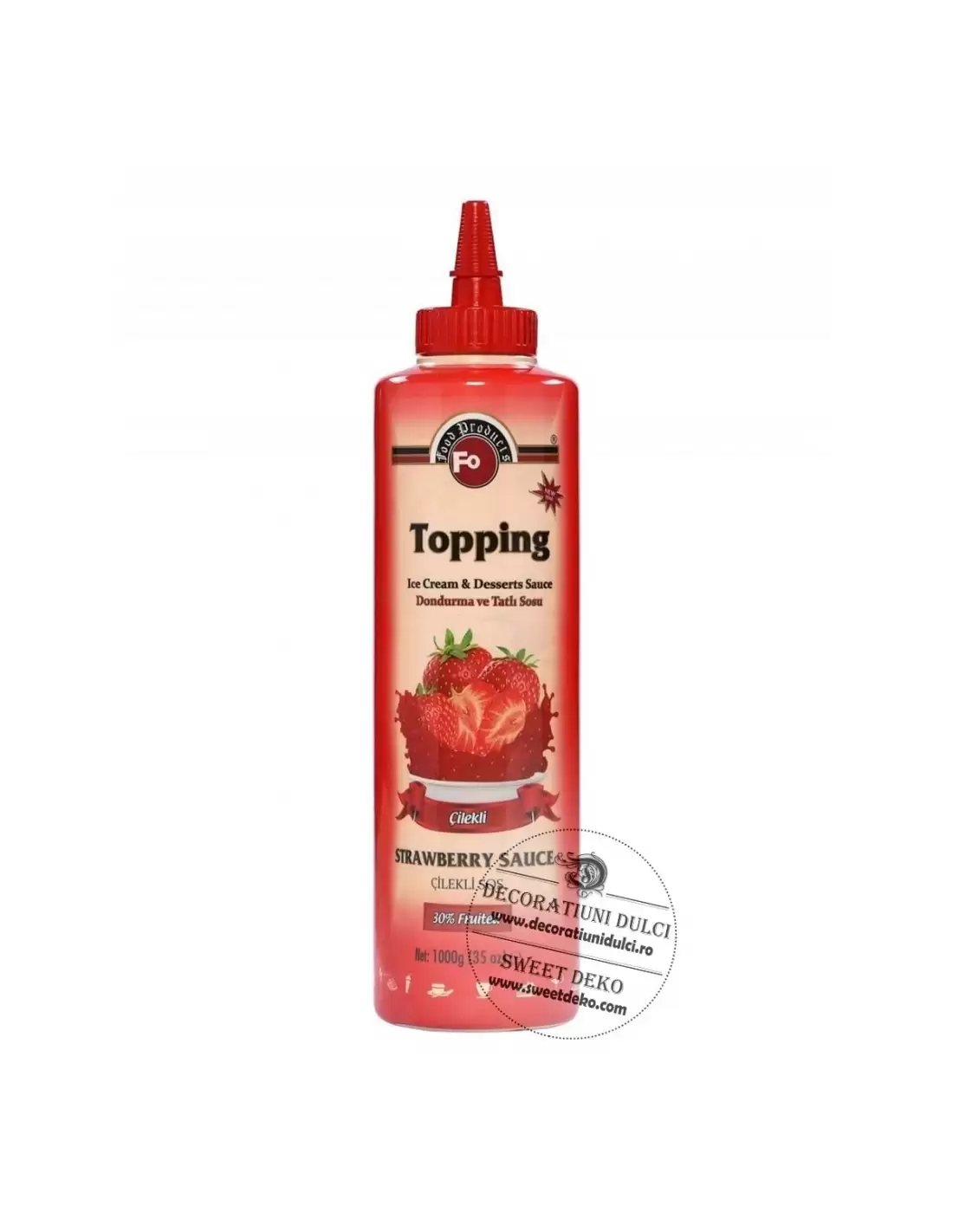 Topping cu aroma de capsune capsune, pentru inghetata si alte deserturi: negresa, clatite, gogosi sau oprice tip de desert. Se poate utiliza si pentru arta decorarii (plating desert)