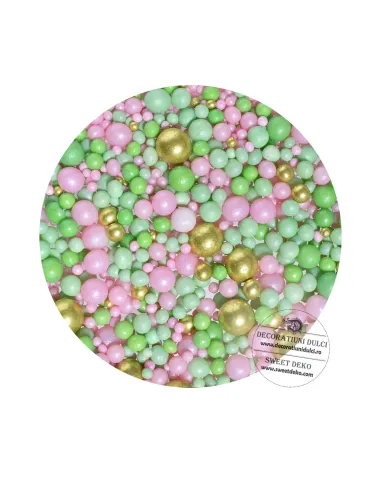 Mix de bomboane de diferite dimensiuni, forme si culori pentru decorarea deserturilor. O combinatie care te duce cu gandul la campurile cu mici floricele parfumate.