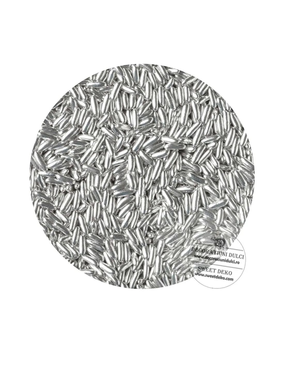 Bobite de orez acoperite cu argint alimentar, pentru decorarea deserturilor in mode deosebit.