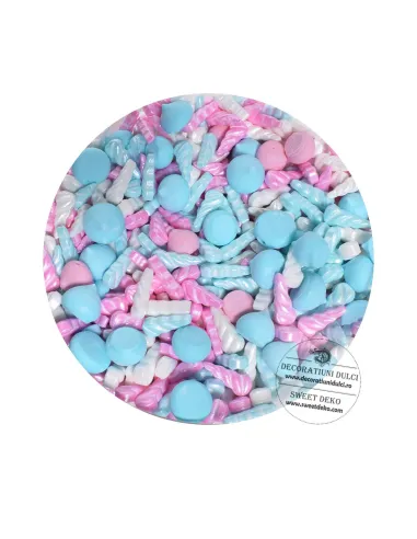 Mici bombonele din zahar in forma de corn de unicorn.