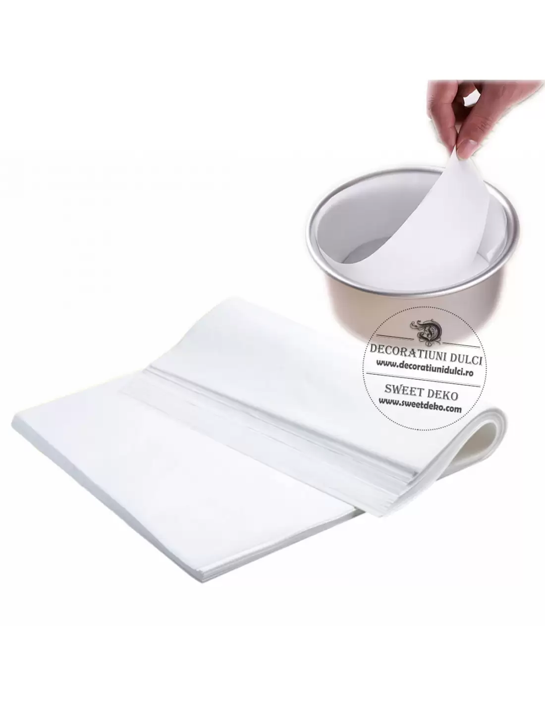 Aceasta hartie este utilizata de obicei in cofetarie, patiserie, bucatarie pentru a coace alimente, cum ar fi prajituri, fursecuri, paine sau alte alimente care se pot lipi de suprafata de copt. Hartia de copt alba este mai rezistenta la temperaturi ridicate si nu se rupe ușor, ceea ce o face mai usor de manevrat si de curatat.