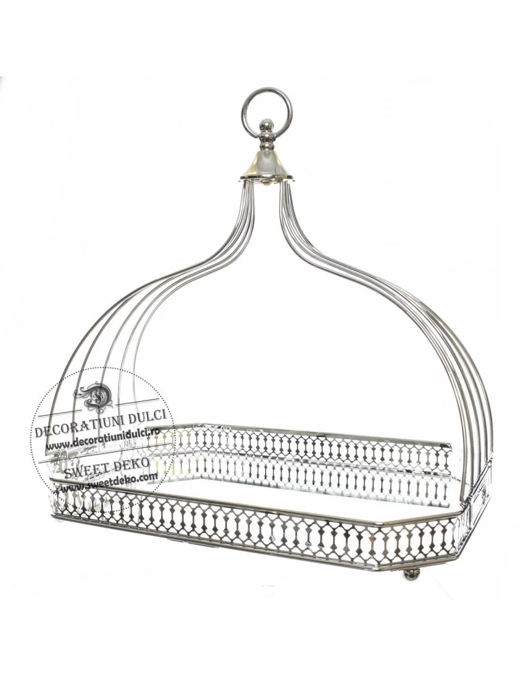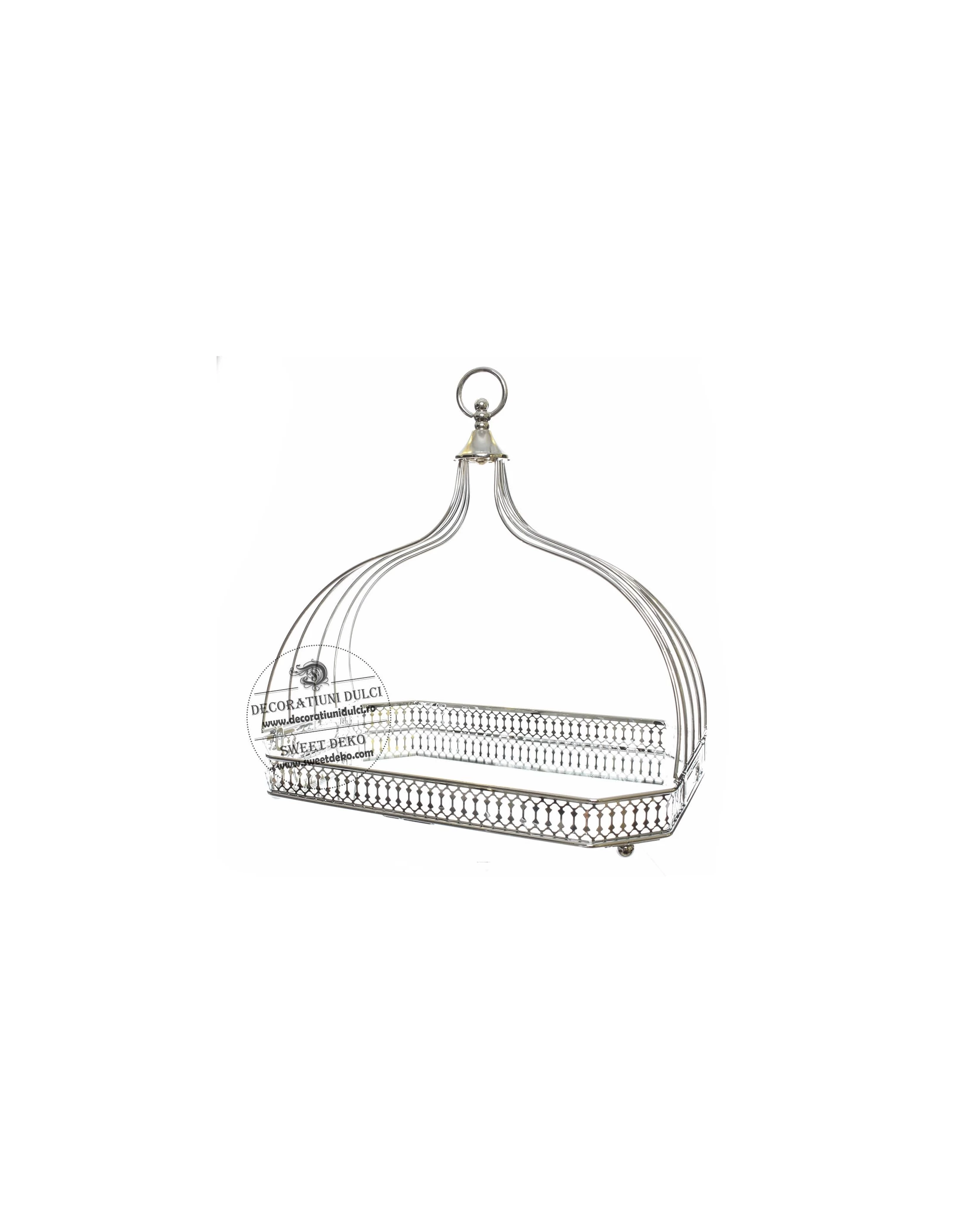 Platou pentru prezentare, cu baza oglinda si maner metalic. Un suport cu linii clare, care vor da acea eleganta oricarui eveniment.