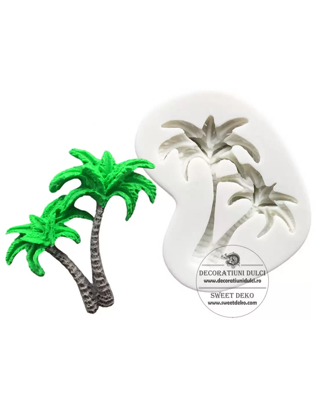 Mulaj silicon doi palmieri o matrita care va ajuta sa recreati din pasta de zahar, ciocolata modelabila, gumpaste etc un decor exotic pentru deserturile dvs.