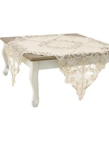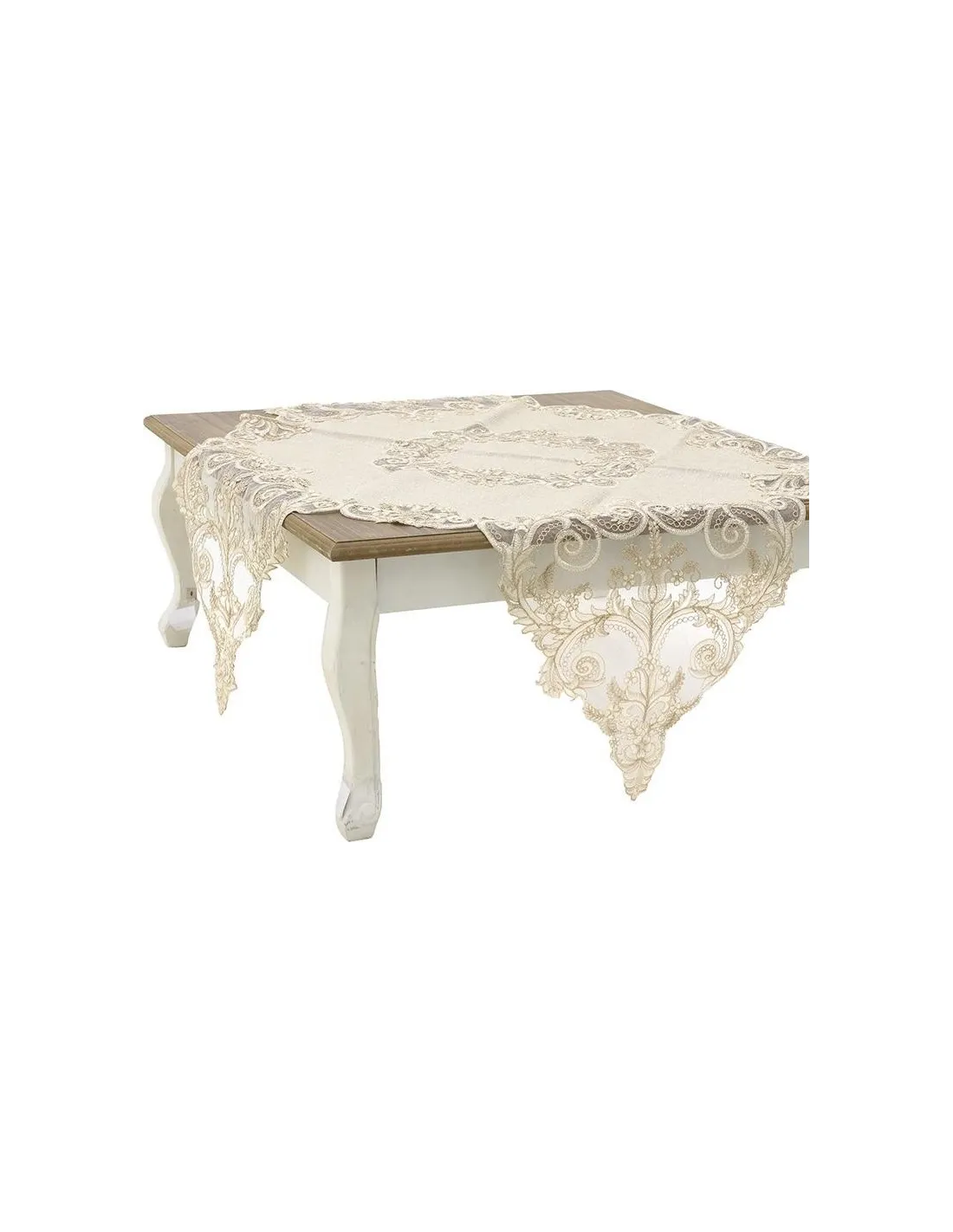 Fata de masa dantelata, potrivita sa complteze decorul unei mese de candy bar micut.