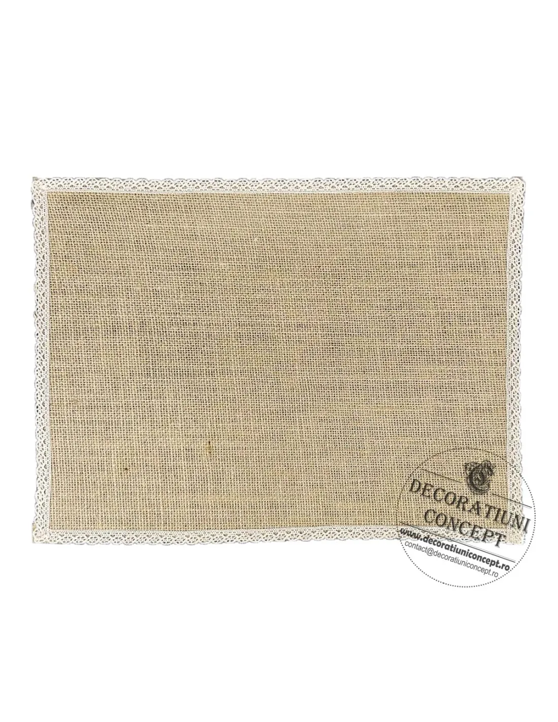Suport farfurie, textil este realizat dintr-un material model sac, cu o broderie delicata pe margine.