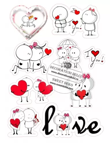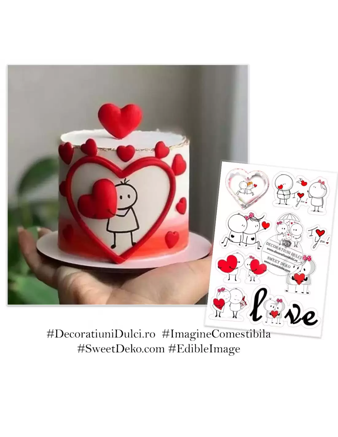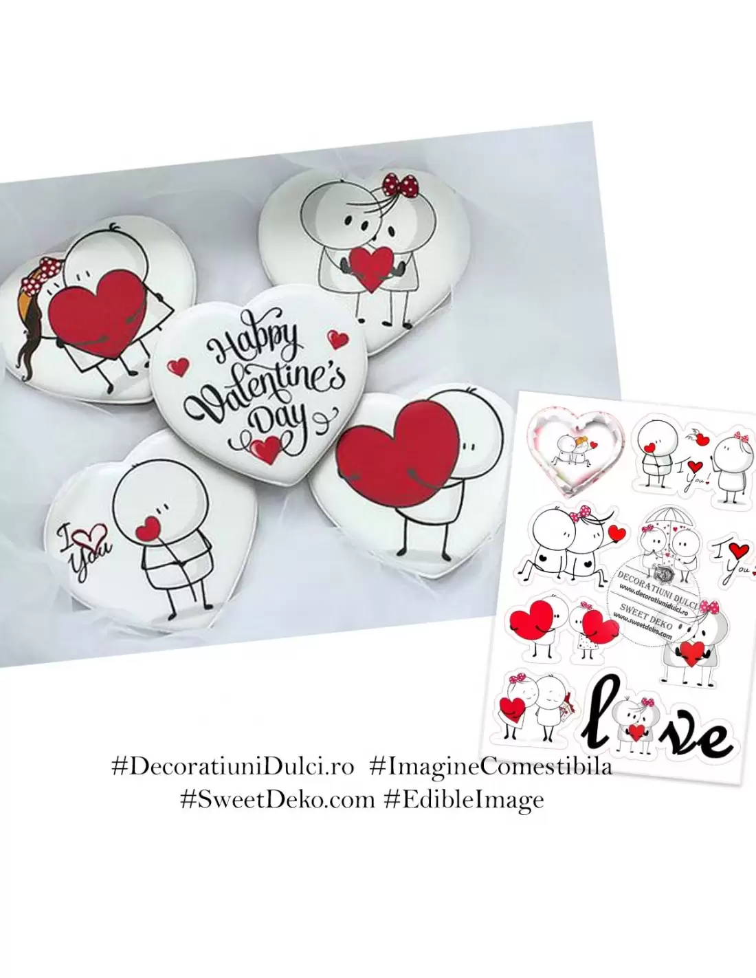 Imagine comestibila - Stick Love este o metoda haioasa de a decora simplu un desert. Imagini imprimate cu cerneala comestibila pe coala dulce, cu care puteti decora diferite deserturi. Inimioarele mici se pot aplica pe lateralul tortului sau se pot asorta cu briose/biscuiti decorati in acelasi ton.
